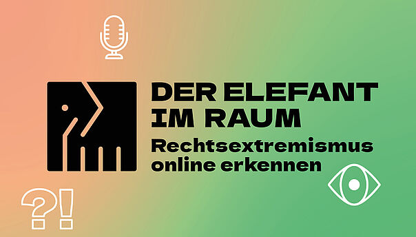 Der Elefant im Raum steht für ein offensichtliches Problem, das von vielen erkannt, aber nicht angesprochen wird. In den sozialen Medien gibt es viele Inhalte mit rechtsextremen Botschaften. Das Projekt Der Elefant im Raum versucht, für die Präsenz und Problematik dieser Inhalte zu sensibilisieren. In monatlichen Social Media-Kampagnen und Podcast-Folgen wird darüber informiert und werden rechtsextreme Ansprachen dekonstruiert.