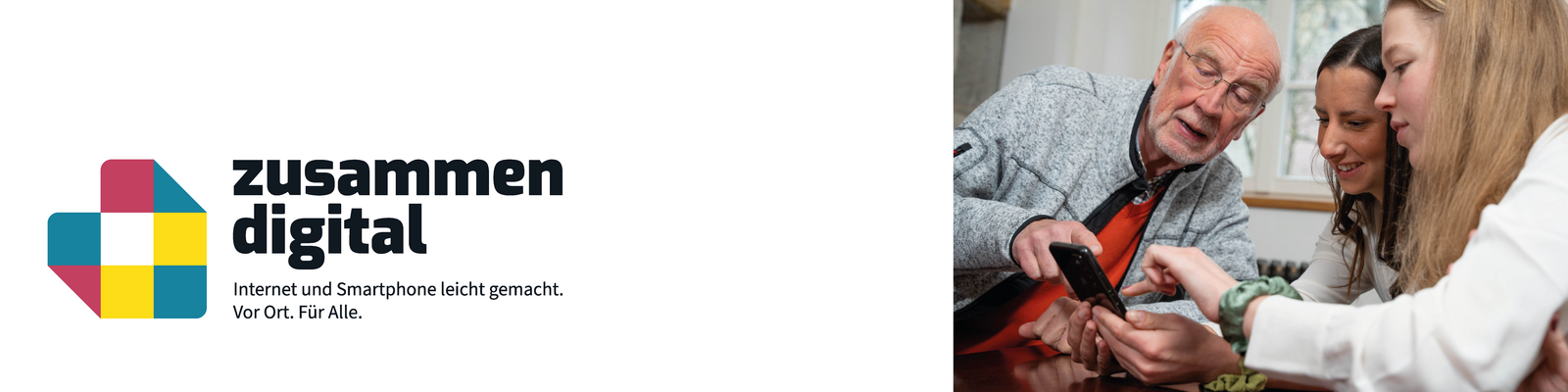 zusammen digital ist ein Angebot für Menschen, die Unterstützung in der digitalen Welt benötigen. Dabei geht es um Fragen zum Umgang und der Nutzung von Computer, Tablet oder Smartphone. Die Beratung findet regelmäßig an barrierearmen Theken statt. Diese zusammen digital-Theken soll für möglichst von allen interessierten Personen barrierearm besuchbar sein. Zudem werden telefonische Beratungen angeboten. Die Angebote sind für die Nutzenden kostenfrei. Durchgeführt werden die Beratungen von jungen Menschen, die dafür von medienpädagogischen Fachkräften ausgebildet werden.
