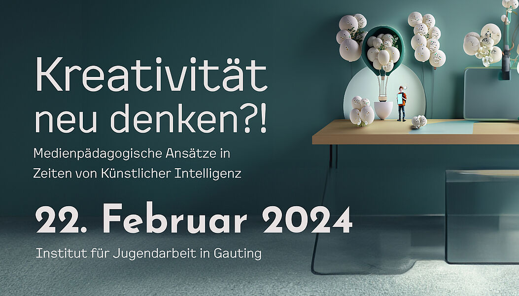 Die neunte Jahresauftakttagung zum Thema „Kreativität neu denken?! Medienpädagogische Ansätze in Zeiten von Künstlicher Intelligenz“ findet am 22. Februar 2024 im Institut für Jugendarbeit in Gauting statt. Die Vorträge am Vormittag werden live gestreamt und in Gebärdensprache übersetzt.