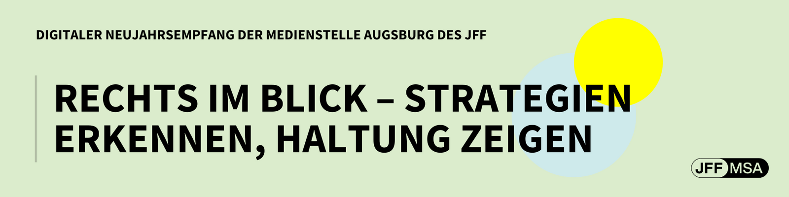 Beim digitalen Neujahrsempfang der Medienstelle Augsburg des JFF betrachten wir aktuelle Formen rechtsextremer und rechtspopulistischer Kommunikation insbesondere im Kontext von Medien, ordnen sie ein und tauschen uns darüber aus.