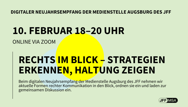 Beim digitalen Neujahrsempfang der Medienstelle Augsburg des JFF betrachten wir aktuelle Formen rechtsextremer und rechtspopulistischer Kommunikation…