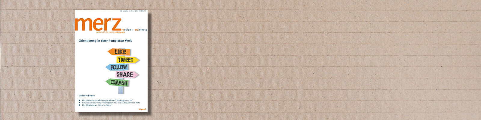 Der aktuelle Themenschwerpunkt der merz 3/2018 hellt Intransparenz in Sachen Orientierungsfunktion der Medien auf und fordert eine kritische Medienpädagogik. Nach welchen Kriterien geschieht die Auswahl von Information? Welchen Regeln folgen Meinungsbildungsprozesse in sozialen Netzwerken? Welche Rolle spielen dabei politische und kommerzielle Interessen? Das Heft verdeutlicht, dass Orientierung im Alltagserleben Jugendlicher keine einfach Aufgabe ist – nicht nur beliebte Casting Shows, vor allem auch Soziale Netzwerke sind bestimmt durch Interessenlagen der Global Player. merz 3/2018 liefert damit Anregungen für eine Auseinandersetzung mit der Frage, wie Orientierung in der komplexen Welt stattfindet.