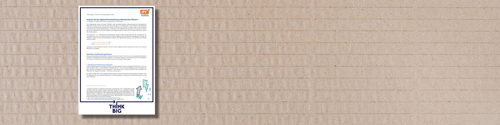 Was bietet die digitale Bereitstellung methodischen Wissens? Diese Frage steht im Mittelpunkt eines Arbeitspapiers, das vom JFF im Rahmen der Think Big Digitalwerkstatt erstellt wurde.