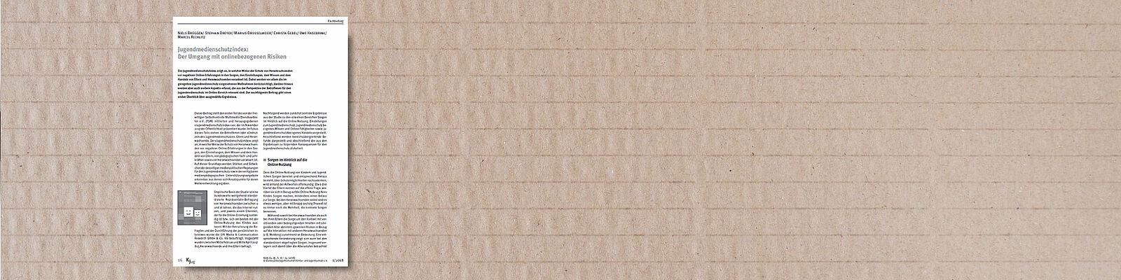 Brüggen, Niels; Dreyer, Stephan; Drosselmeier, Marius; Gebel, Christa; Hasebrink, Uwe; Rechlitz, Marcel (2018): Jugendmedienschutzindex: Der Umgang mit onlinebezogenen Risiken. In: KJuG 1/2018, S. 16-19
