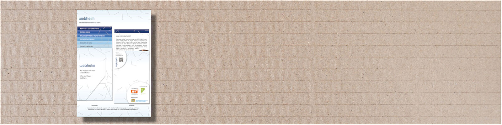 Der Flyer bietet Eltern wissenswerte Informationen über Persönlichkeitsrechte, Datenschutz, Kommerz im Netz und Co. Der Flyer steht auf webhelm.de zum Download bereit.