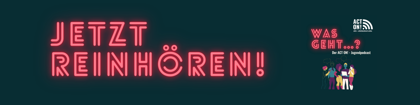 Der Jugendpodcast "Was geht...?" wird partizipativ von Jungredakteur*innen und jungen Medienmacher*innen aus ganz Deutschland umgesetzt. In ihren selbstproduzierten Episoden sprechen sie über ihre Onlinewelten, den Umgang mit Risiken im Netz und was vor allem Kinder und Jugendliche sonst noch beschäftigt. Der Podcast ist Teil des Projektes ACT ON! aktiv+selbstbestimmt online des JFF - Institut für Medienpädagogik in Forschung und Praxis. Es wird gefördert vom Bundesfamilienministerium (BMFSFJ) im Rahmen der Initiative "Gutes Aufwachsen mit Medien".