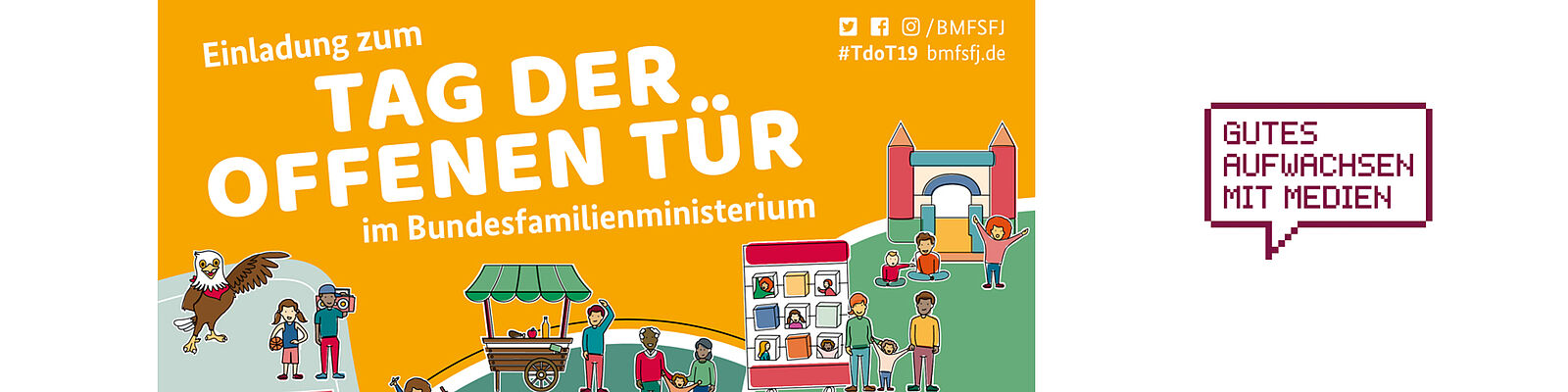 Besuchen Sie uns am 17. August von 14 bis 18 Uhr beim Tag der offenen Tür des Bundesfamilienministeriums am gemeinsamen Stand Gutes Aufwachsen mit Medien im Kinder- und Familienhof (Nahe der Hauptbühne/Stand Nr. 6).